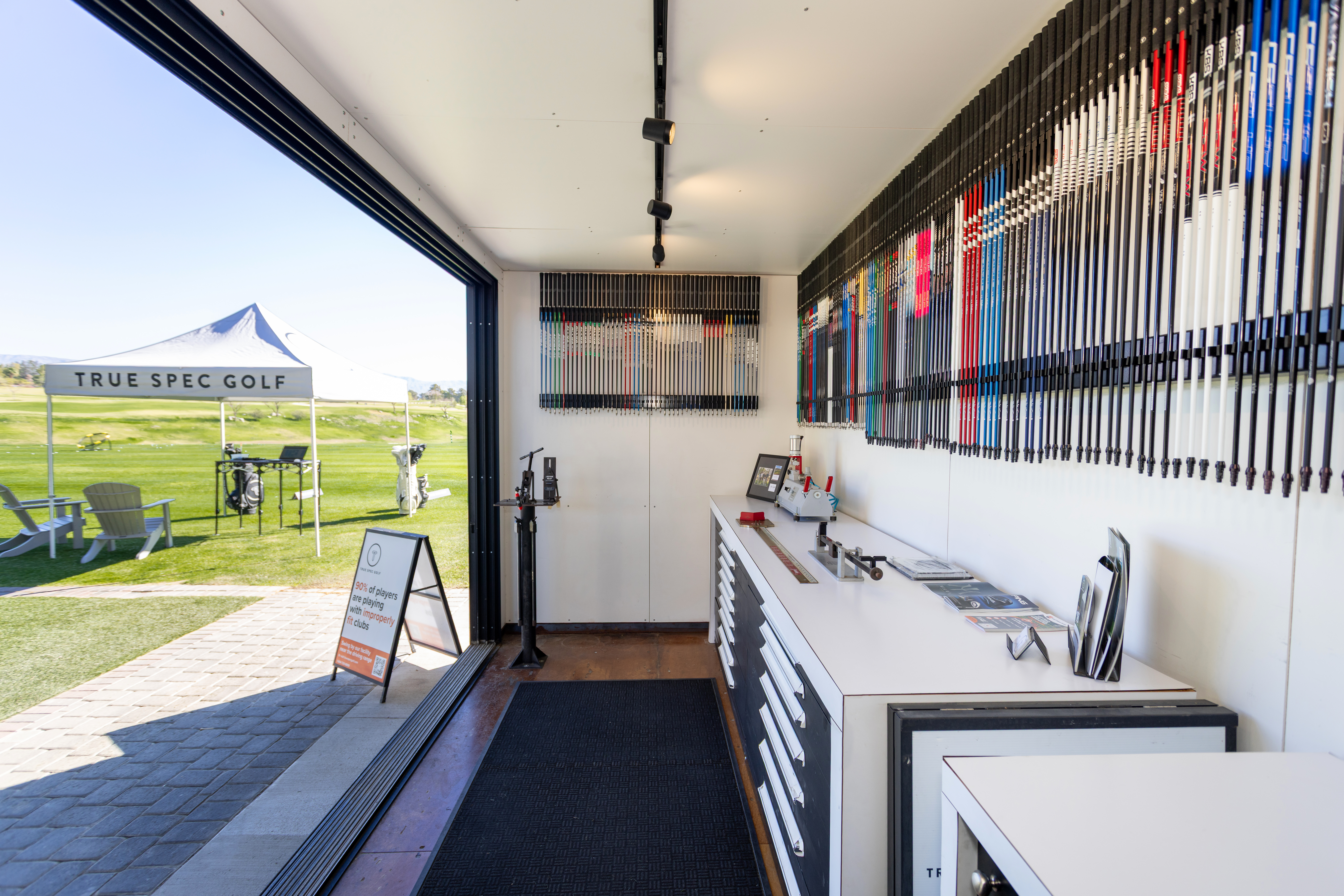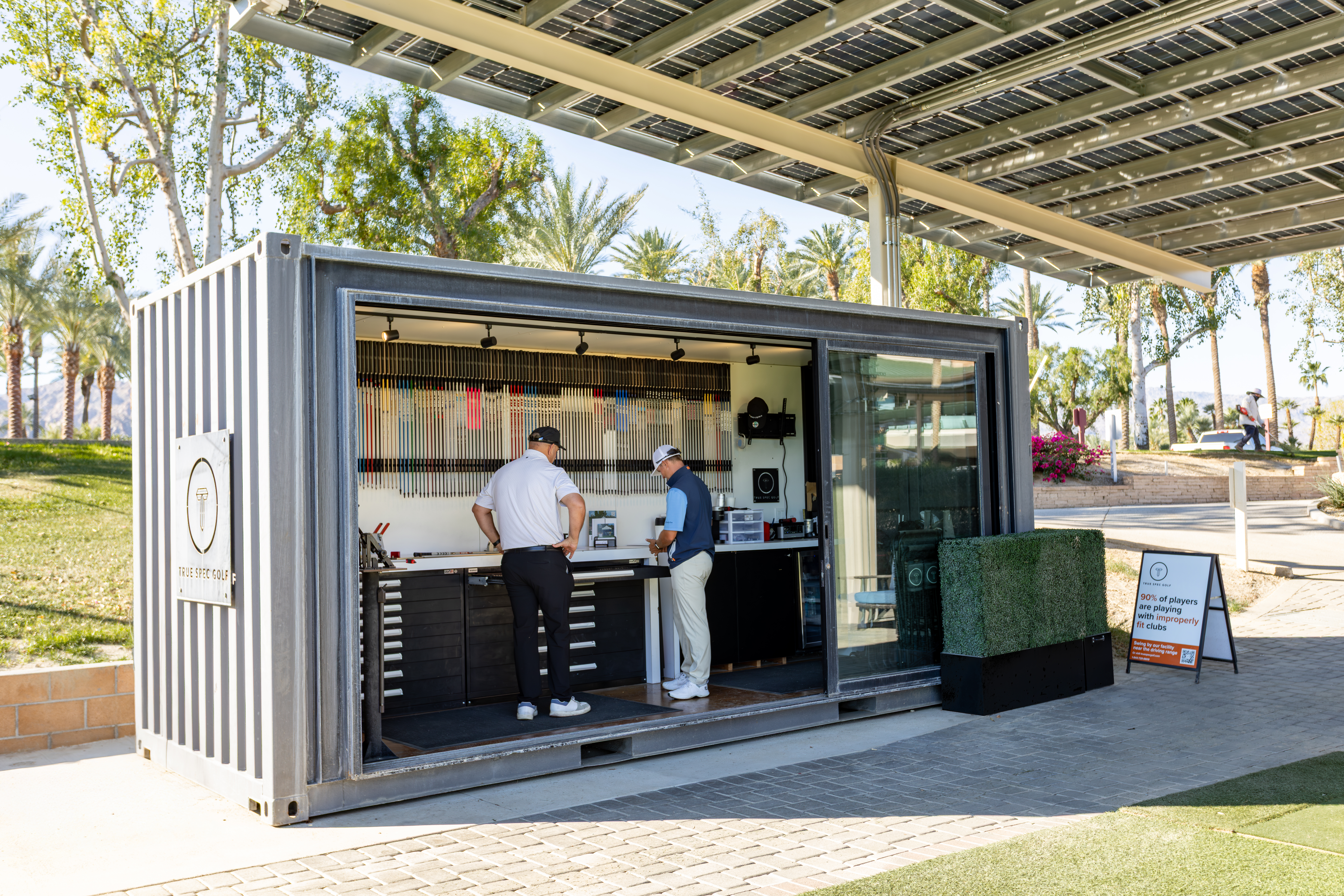 Located at the award-winning Indian Wells Golf Resort, True Spec Palm Springs–Indian Wells features one of our state-of-the-art fitting containers, with fittings moving indoors to a dedicated bay inside the clubhouse during the summer months. Fittings are conducted off natural grass on Mondays and Tuesdays, and from hitting mats Wednesday through Saturday. The facility utilizes the industry’s first quadroscopic launch monitor, Foresight GCQuad, along with True Spec’s signature brand-agnostic fitting matrix of over 70,000 clubhead and shaft combinations to help our master fitters find the best equipment for your game.